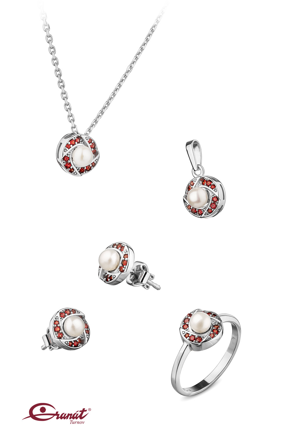 Kolekce Granátu Turnov nabízí široký výběr nadčasových perlových šperků s českým granátem, které se mohou stát součástí každého dne i výjimečných okamžiků. Pro slavnostní příležitosti můžete vybírat například elegantní luxusní perlovou soupravu s českým granátem, která podtrhne významné okamžiky (náhrdelník + náramek)