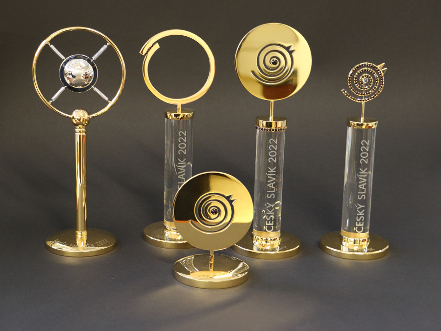 V našich dílnách se vyráběla i další ocenění, které se předávají vítězům v kategorii Síň slávy, Objev roku a jehlice s českým slavíkem.