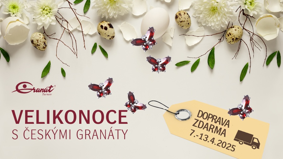 Granát Turnov připravil speciální velikonoční akci od 7. do 13. dubna 2025 máte jedinečnou příležitost pořídit si šperk s pravým českým granátem s dopravou zdarma po celé České republice.