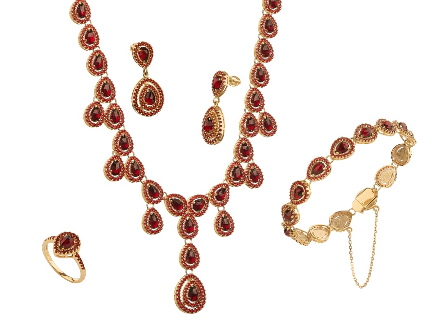 Pravost kamenů a originalita soupravy je doložená certifikátem Granátu Turnov.