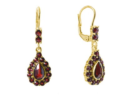 Stříbrný prsten s českým granátem, rhodiovaný - kapka