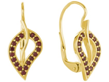 Set of silver jewellery 1401 with czech garnet, rhodium plated - leaf