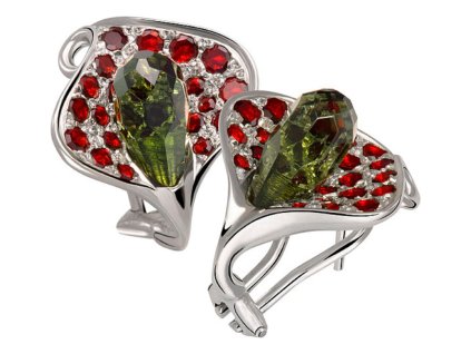Silver earrings with czech garnet and moldavite, rhodium plated - calla