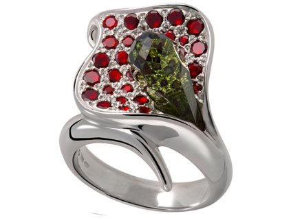 Silver ring with czech garnet and moldavite, rhodium plated - calla
