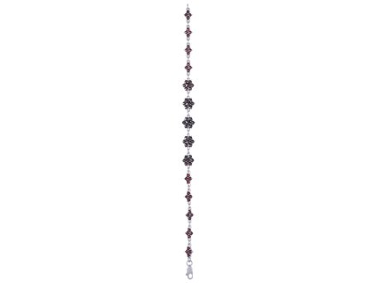 Silver bracelet with czech garnet, rhodium plated - flower
