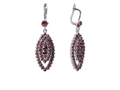 Silver earrings with czech garnet, rhodium plated