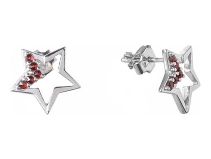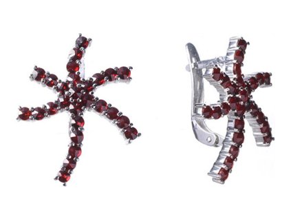 Silver earrings with czech garnet and moldavite, rhodium plated - star