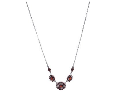 Stříbrný náhrdelník s českým granátem a perlou, rhodiovaný