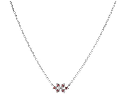 Silver necklace with czech garnet, rhodium plated - flower