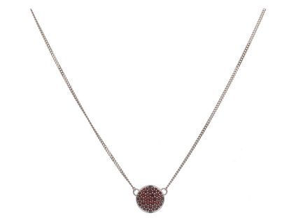 Silver necklace with czech garnet, rhodium plated - circle