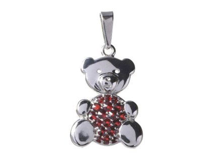 Silver pendant with czech garnet, rhodium plated, animal - bear