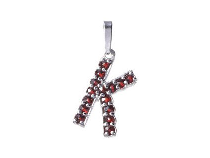 Silver pendant with czech garnet, rhodium plated - letter K