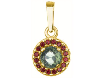 Silver pendant with czech garnet and moldavite, gold plated - circle