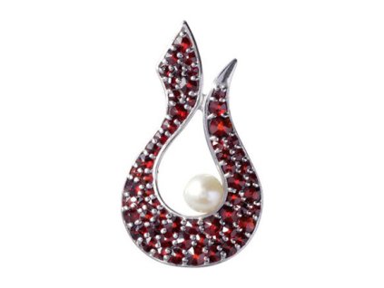 Silver pendant with czech garnet and pearl, rhodium plated - tip