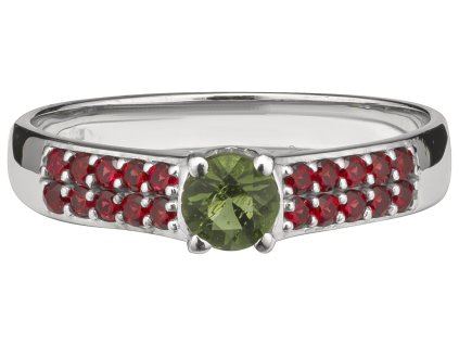 Silver ring with czech garnet and moldavite, rhodium plated - line