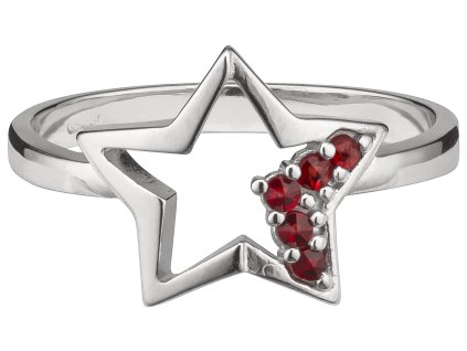 Silver ring with czech garnet, rhodium plated - star