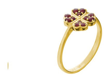Silver ring with czech garnet, gold plated - four-leaf clover