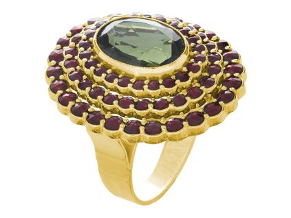 Silver ring with czech garnet and moldavite, gold plated - oval