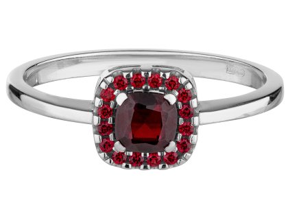 Stříbrný prsten s českým granátem, rhodiovaný - kapka