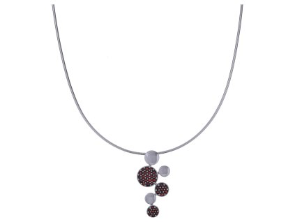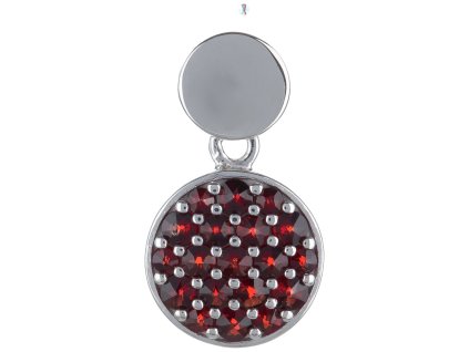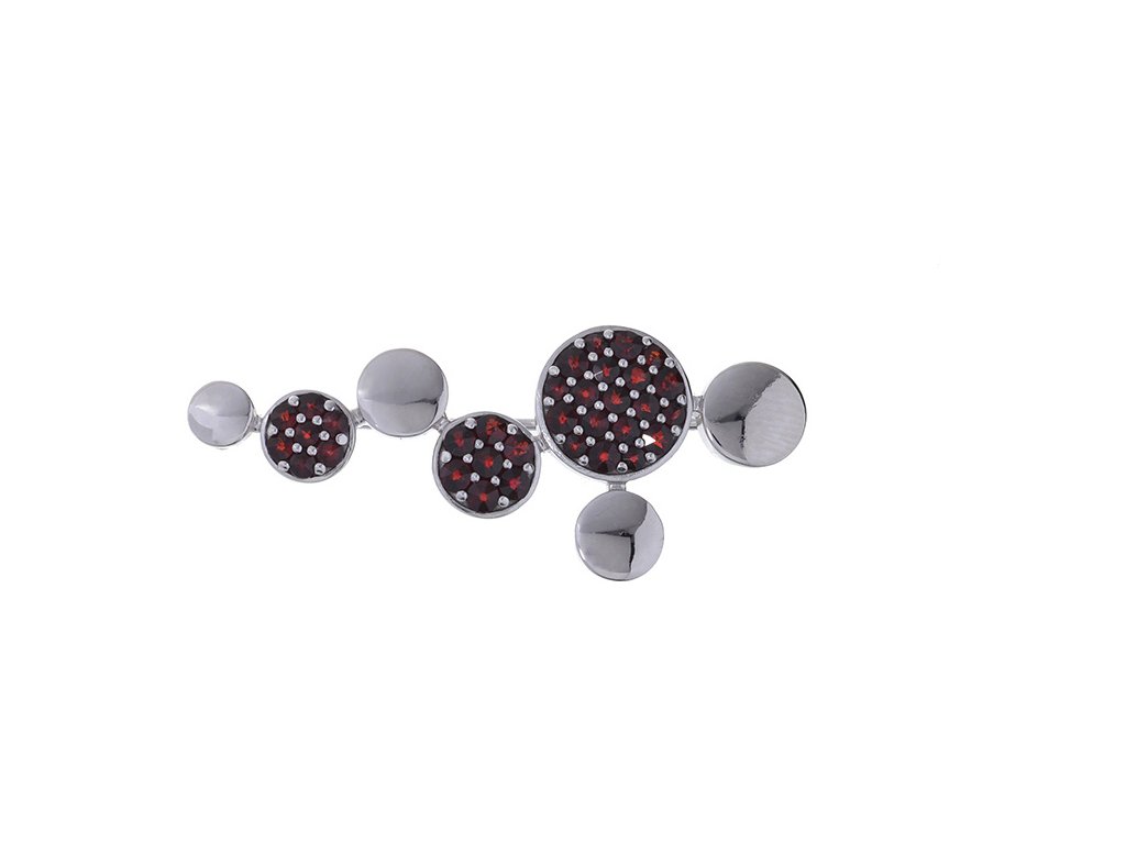 Silver brooch with czech garnet, rhodium plated - circle