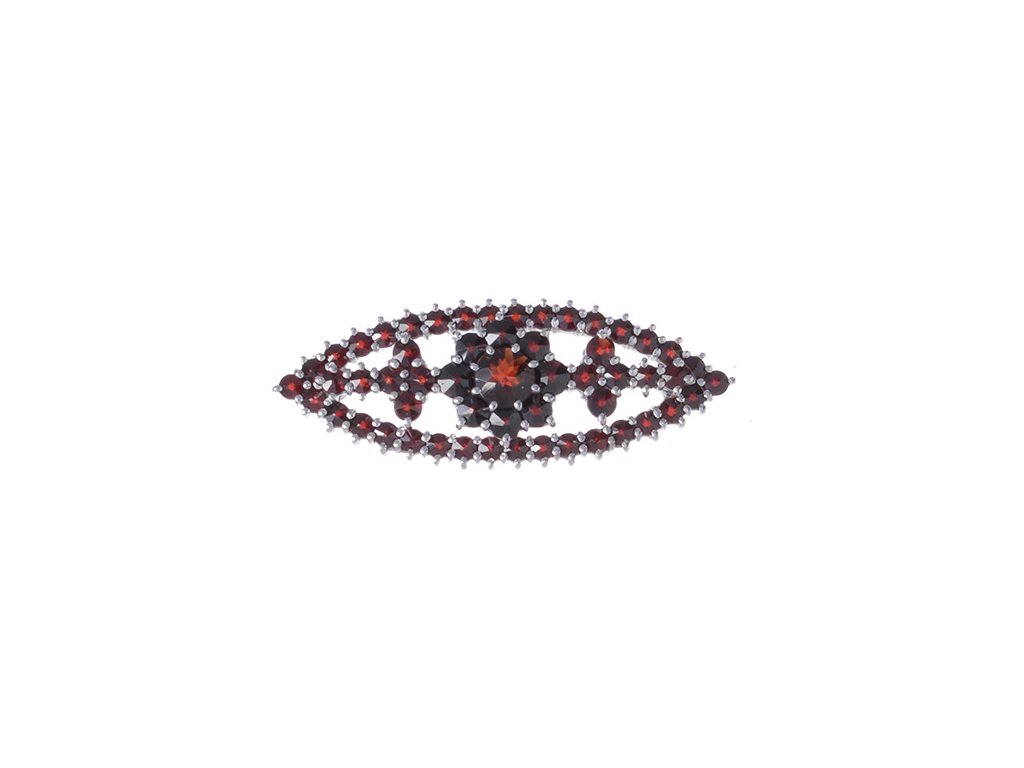 Silver brooch with czech garnet, rhodium plated - flower