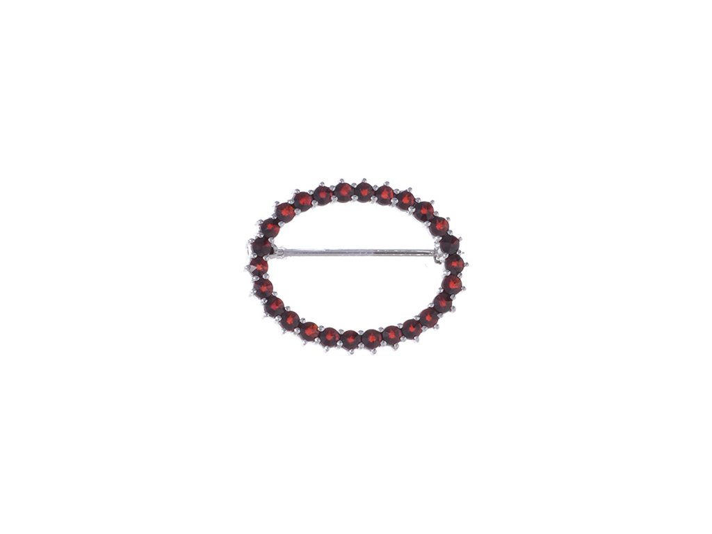 Silver brooch with czech garnet, rhodium plated - oval