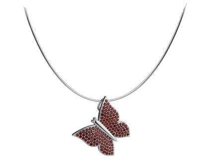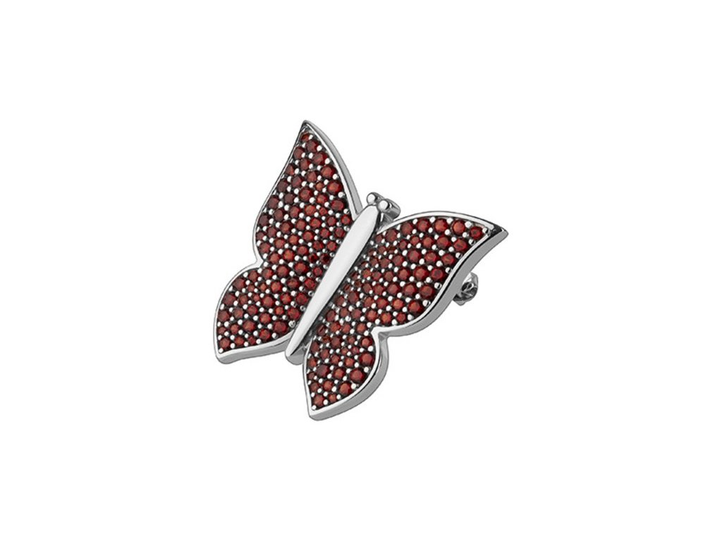 Silver brooch with czech garnet, rhodium plated, animal - butterfly
