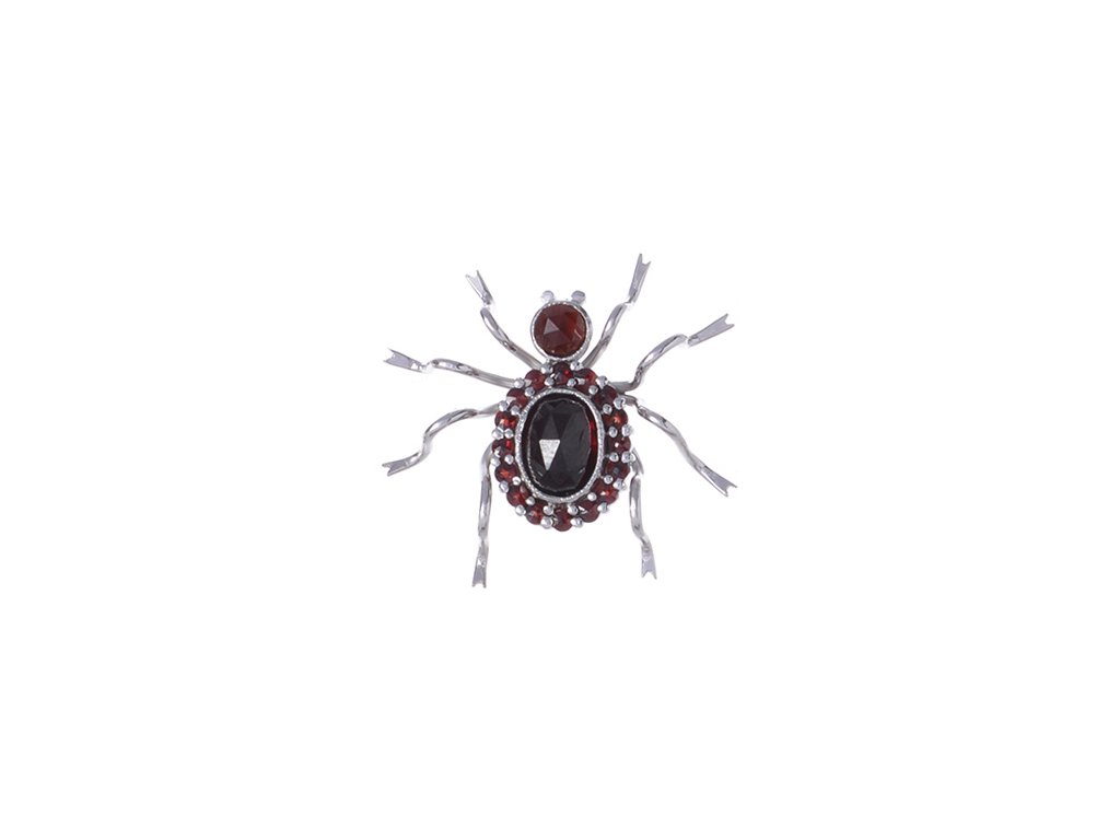 Silver brooch with czech garnet, rhodium plated, animal - spider
