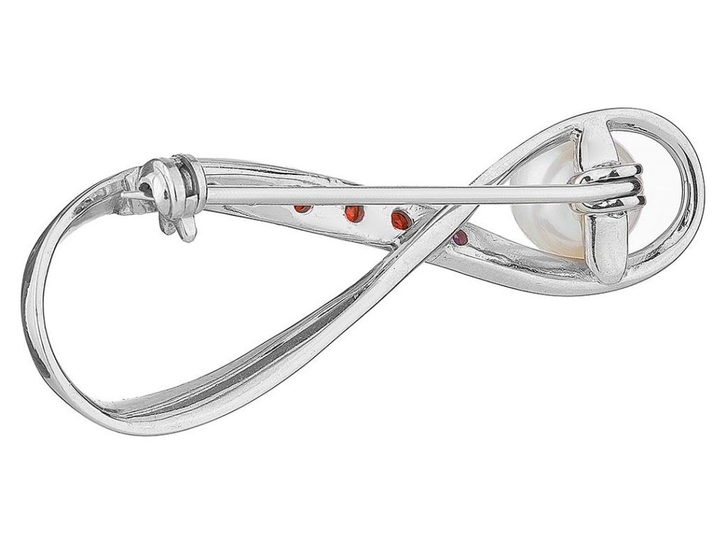Silver brooch with czech garnet and pearl, rhodium plated - infinity