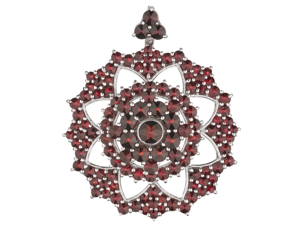 Stříbrná brož - závěs s českým granátem, rhodiovaná - hvězda