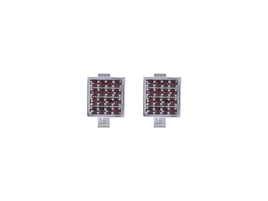 Silver cuff-links with czech garnet, rhodium plated - square