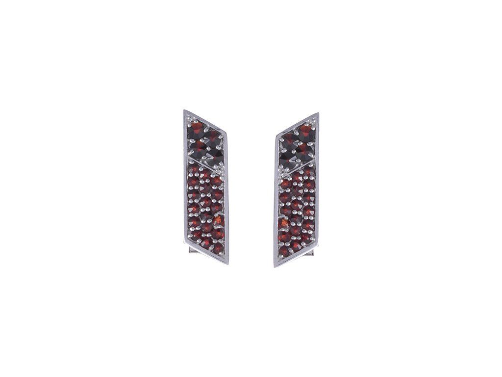 Silver cuff-links with czech garnet, rhodium plated - rectangle