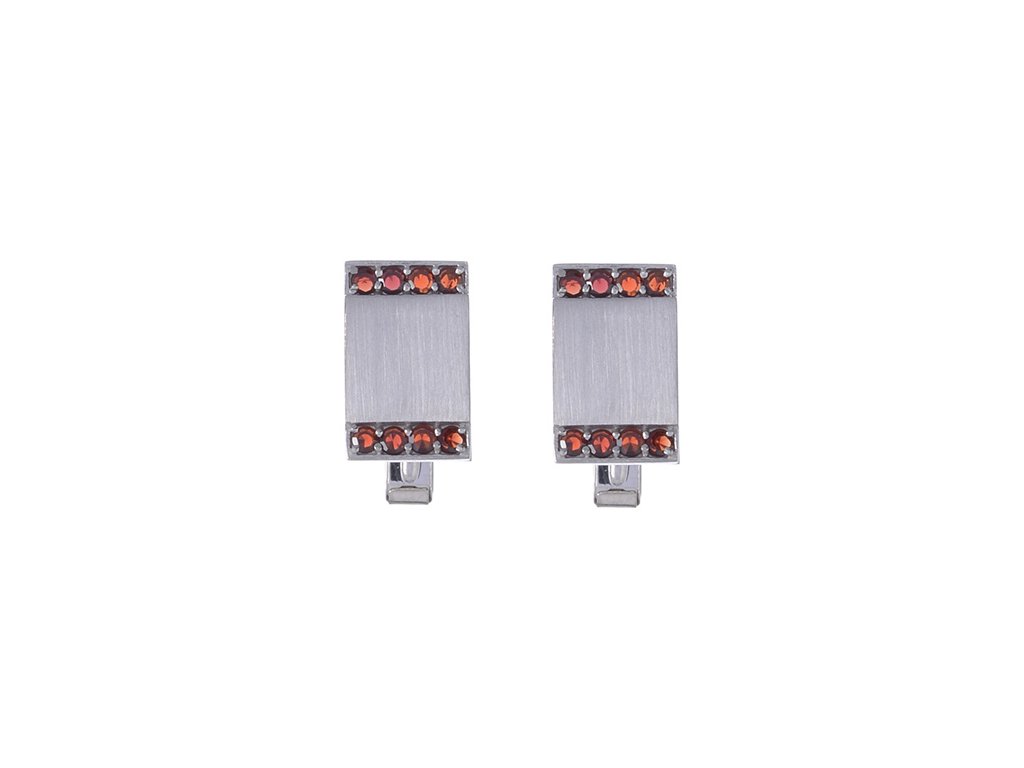 Silver cuff-links with czech garnet, rhodium plated - rectangle