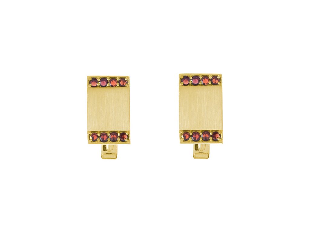 Silver cuff-links with czech garnet, gold plated - rectangle