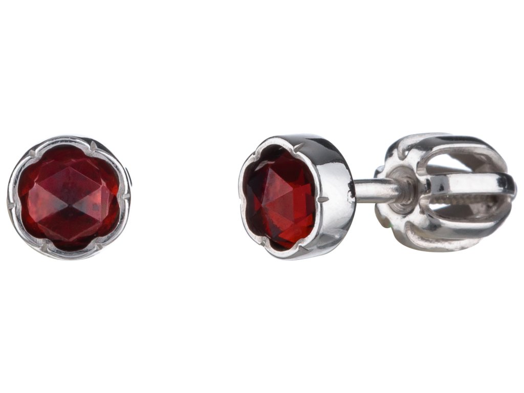 Silver earrings with czech garnet, rhodium plated