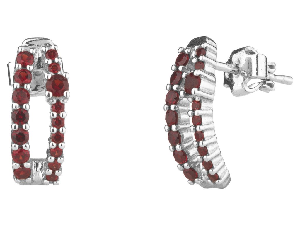 Tyto stylové náušnice jsou vyrobeny ze stříbra (Ag 925/1000) a zušlechtěny rhodiováním. Jsou zdobeny českým granátem, velikost motivu je 16x7 mm.