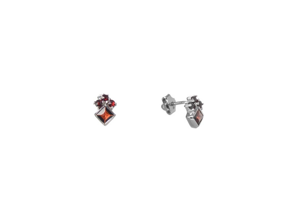 Silver earrings with czech garnet, rhodium plated - square