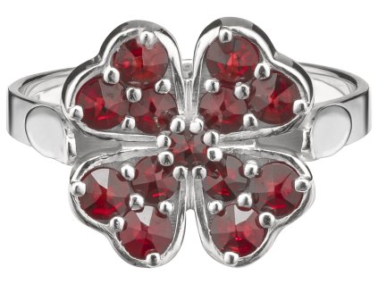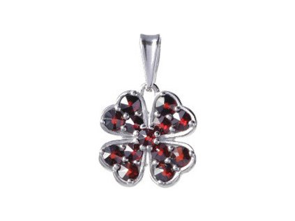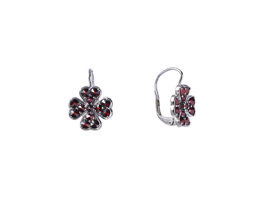 Silver earrings with czech garnet, rhodium plated - four-leaf clover