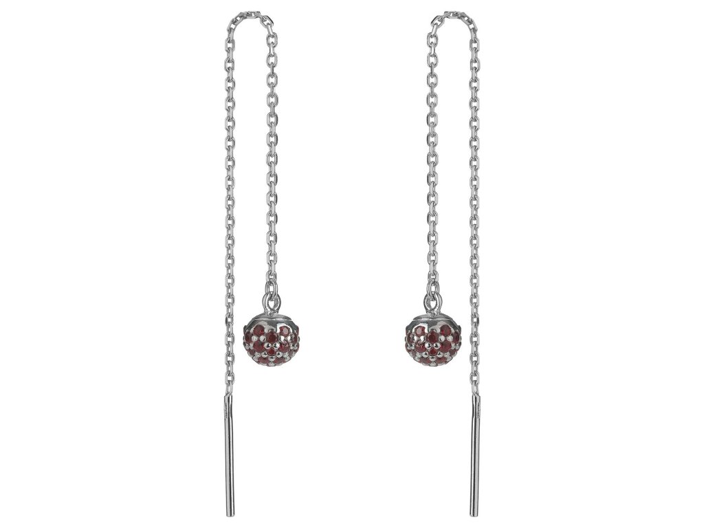 Silver earrings with czech garnet, rhodium plated - ball