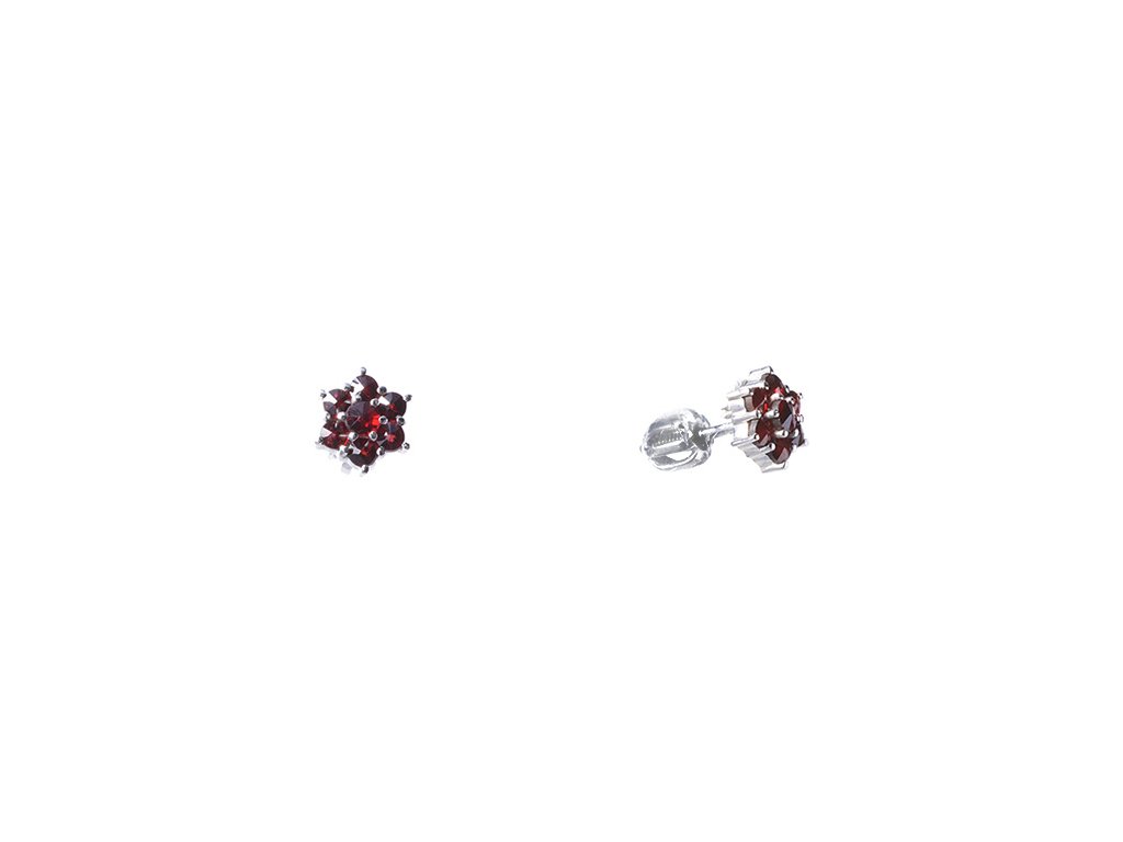 Silver earrings with czech garnet, rhodium plated - flower