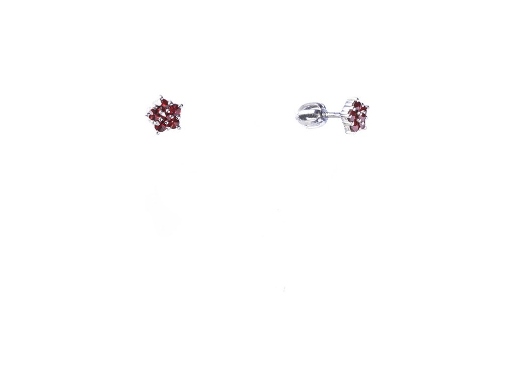 Silver earrings with czech garnet, rhodium plated - flower