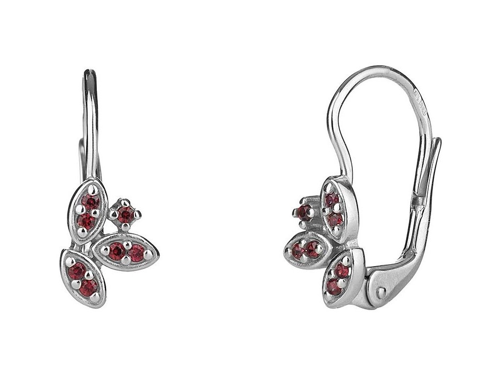 Silver earrings with czech garnet, rhodium plated - leaf