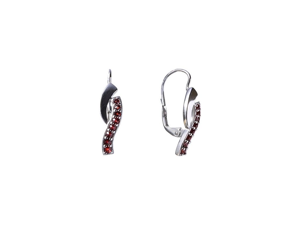 Silver earrings with czech garnet, rhodium plated - wave
