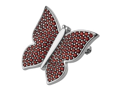 Silver earrings with czech garnet, rhodium plated, animal - butterfly