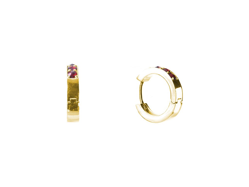 Silver earrings with czech garnet, gold plated - circle