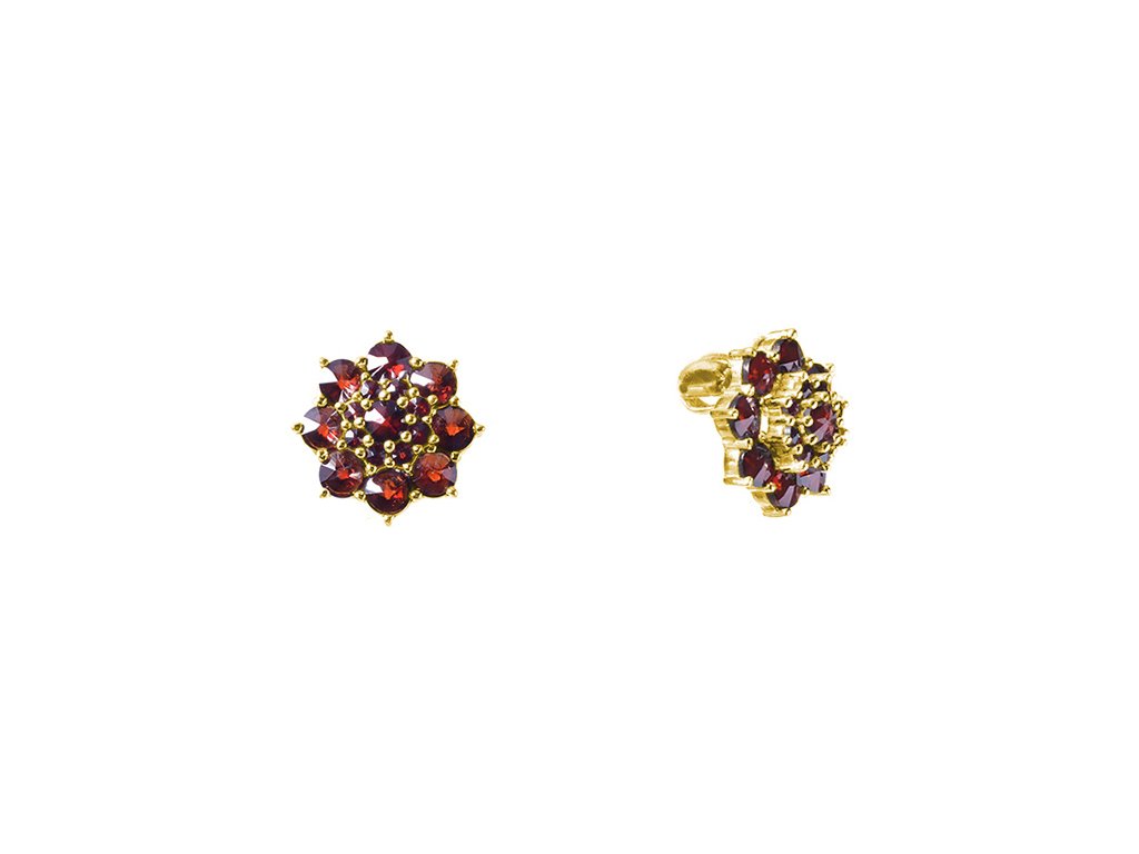 Silver earrings with czech garnet, gold plated - flower