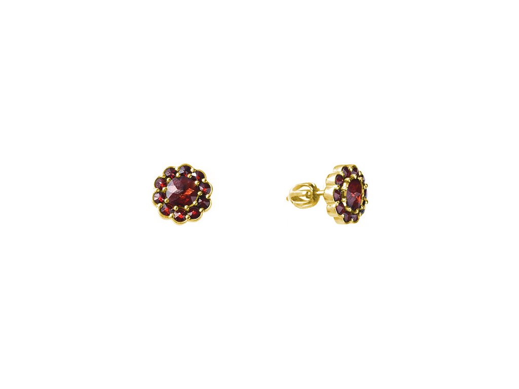 Silver earrings with czech garnet, gold plated - flower