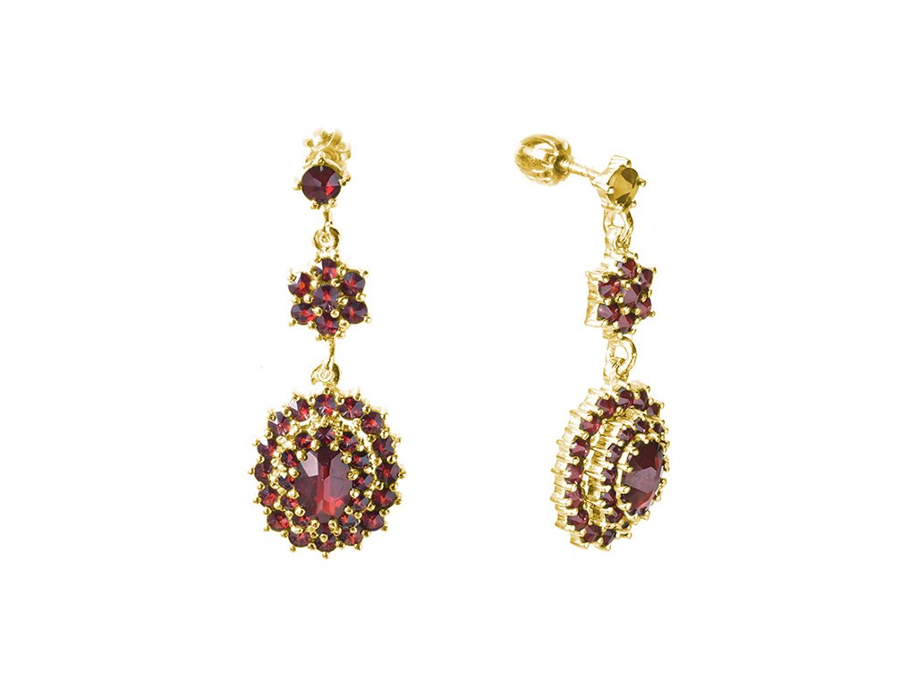 Silver earrings with czech garnet, gold plated - oval