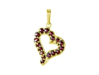 Silver earrings with czech garnet, gold plated - heart