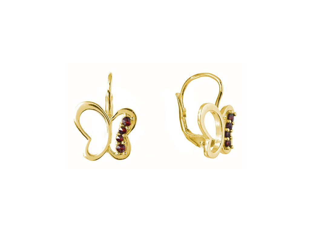 Silver earrings with czech garnet, gold plated, animal - butterfly